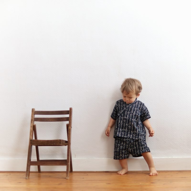 Jinbei for Kids – Linen Feel Cotton Kasuri Print (Navy)