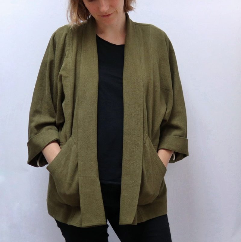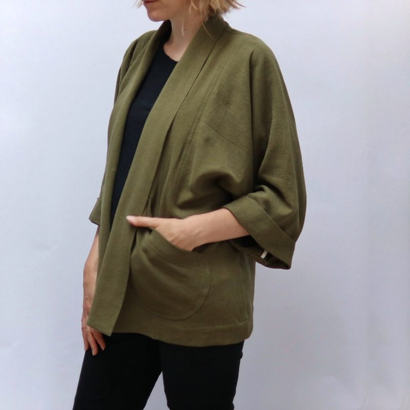 Unisex 100% linen Kimono-style casual jacket available in 4 colours.